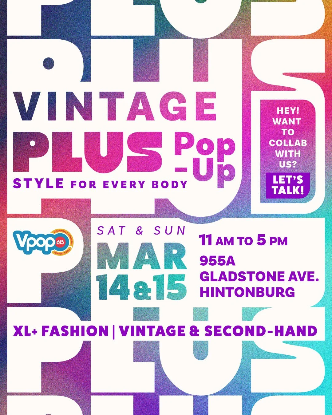 Join us for Ottawa’s original Vintage PLUS Pop-Up, a vibrant and inclusive shopping experience dedicated entirely to XL+ fashion, style, and self-expression!