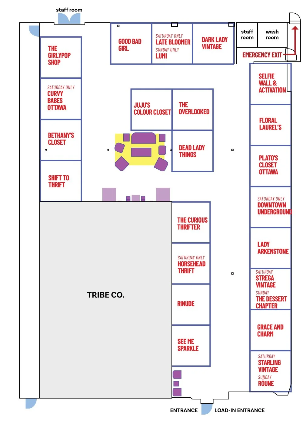 **Saturday vendors, if you plan to set up Friday, please send us an email letting us know what timeSaturday 8:30 am - 10:30 am