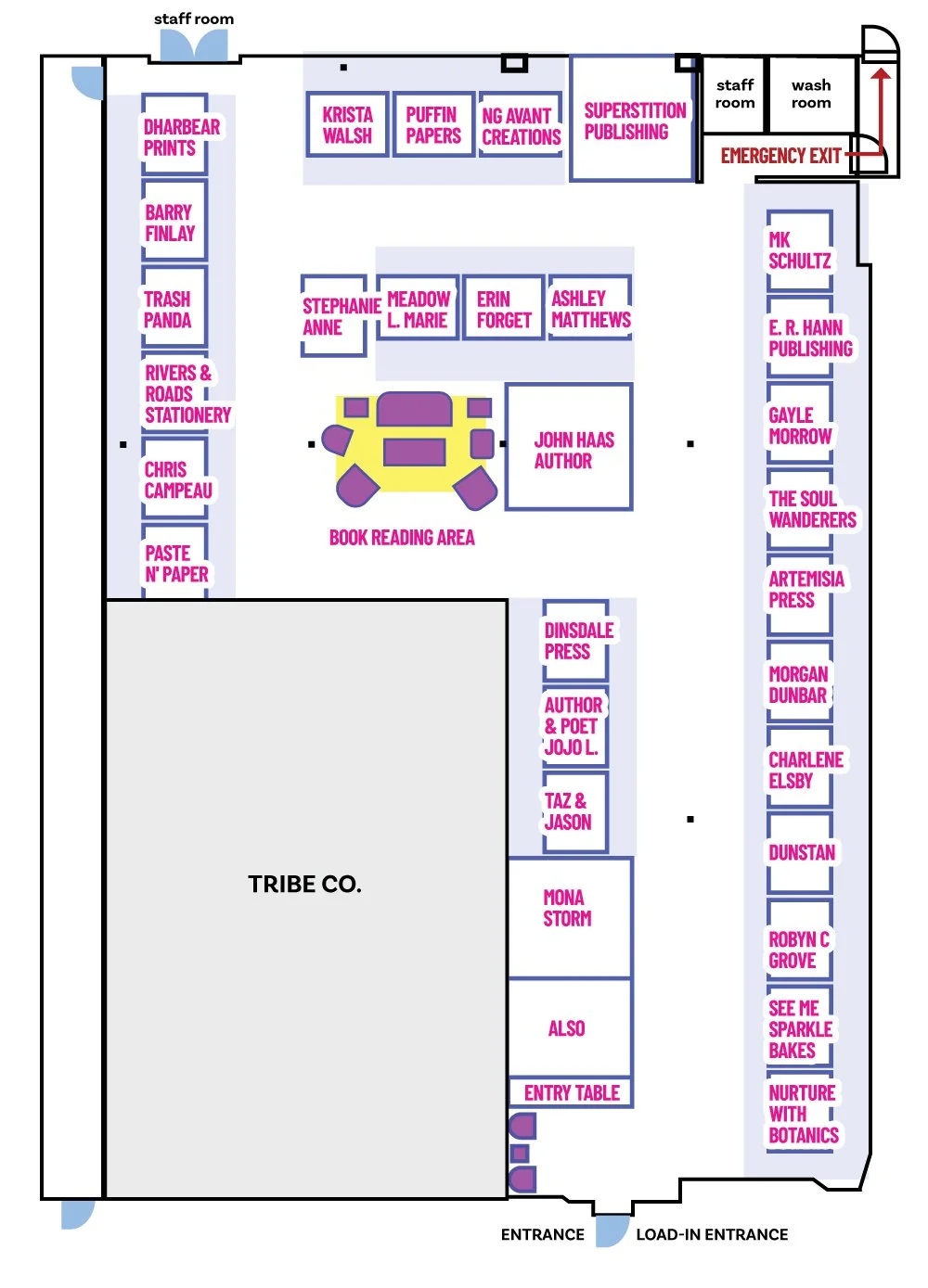 Please bring any display items, tables or chairs you need for the event. These are not provided.